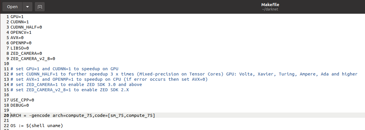 다운로드 된 Darknet 파일로 이동한다. make를 통해 Makefile을 생성하고 다음으로 Makefile을 수정한다.