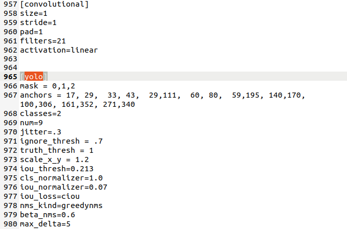 classes = class 갯수 ,filters = (class 개수 + 5) *3, anchors