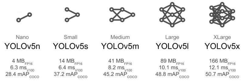 YOLOv5에는 모델의 종류가 많다. Yolo v5는 s, m, l, x 4가지 버전이 존재한다. s는 가장 성능이 낮지만 FPS가 가장 높고, x는 성능이 가장 높지만 FPS가 가장 낮은 특징을 가진다. 본인의 컴퓨터 사양에 맞는 모델을 다운받도록 하자