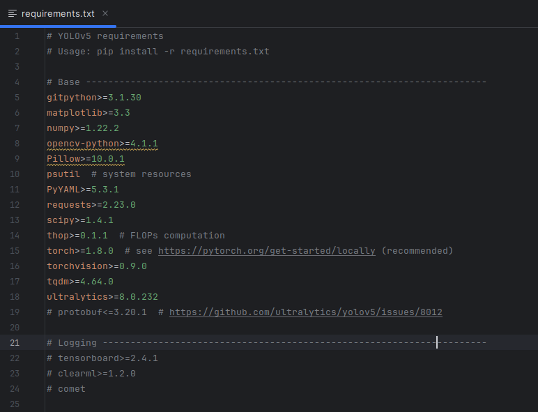 YOLOv5의 공식문서에서 Python>=3.8.0 및 PyTorch>=1.8 환경에서 실행이 되므로 다음과 같이