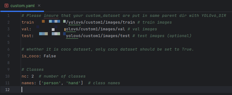 다음은 custom.yaml파일을 만들어 준다. 모델의 구성파일이다.
