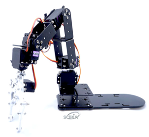 사진에 있는 로봇팔은 싸이피아사의 'A2T 6자유도 알류미늄 로봇팔 로봇암 키트 아두이노'제품이다.