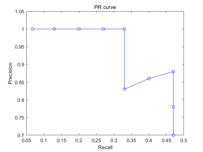 위의 표를 x축에는 Recall, y축에는 Precision을 표현하면 PR curve가 나온다.