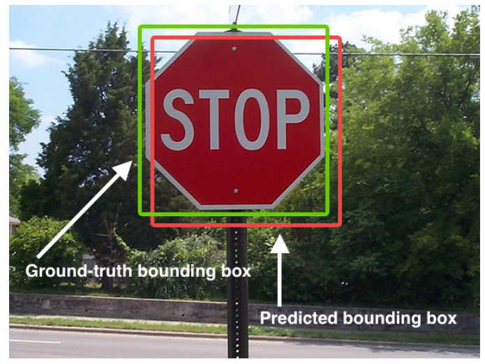 Ground-truth bounding box : 실제 객체 위치 / Predicted bounding box : 모델이 찾은 객체 위치 를 나타낸다.