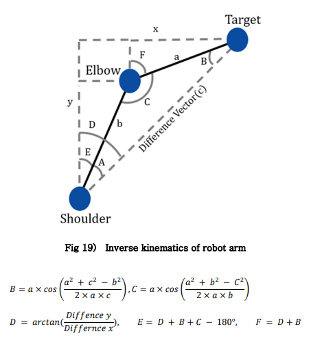거리에 따라 manipulator가 움직일수 있도록 Inverse kinematics 계산을 진행했다.